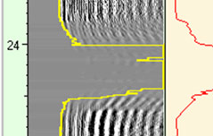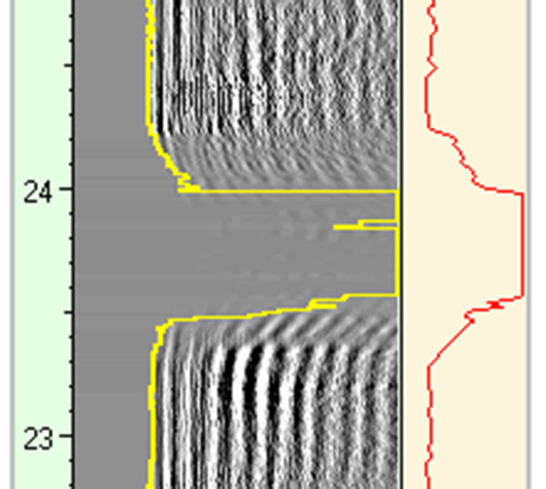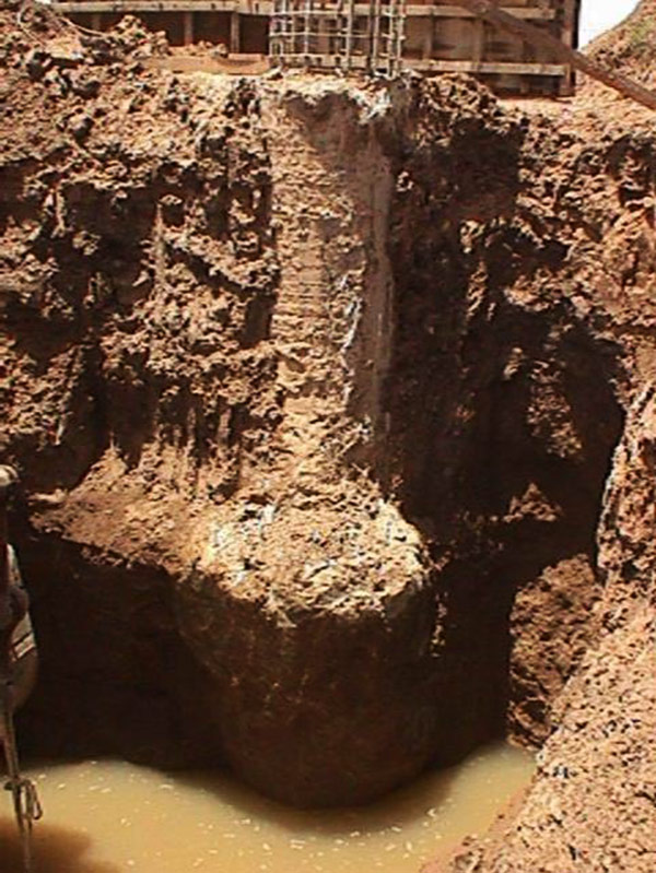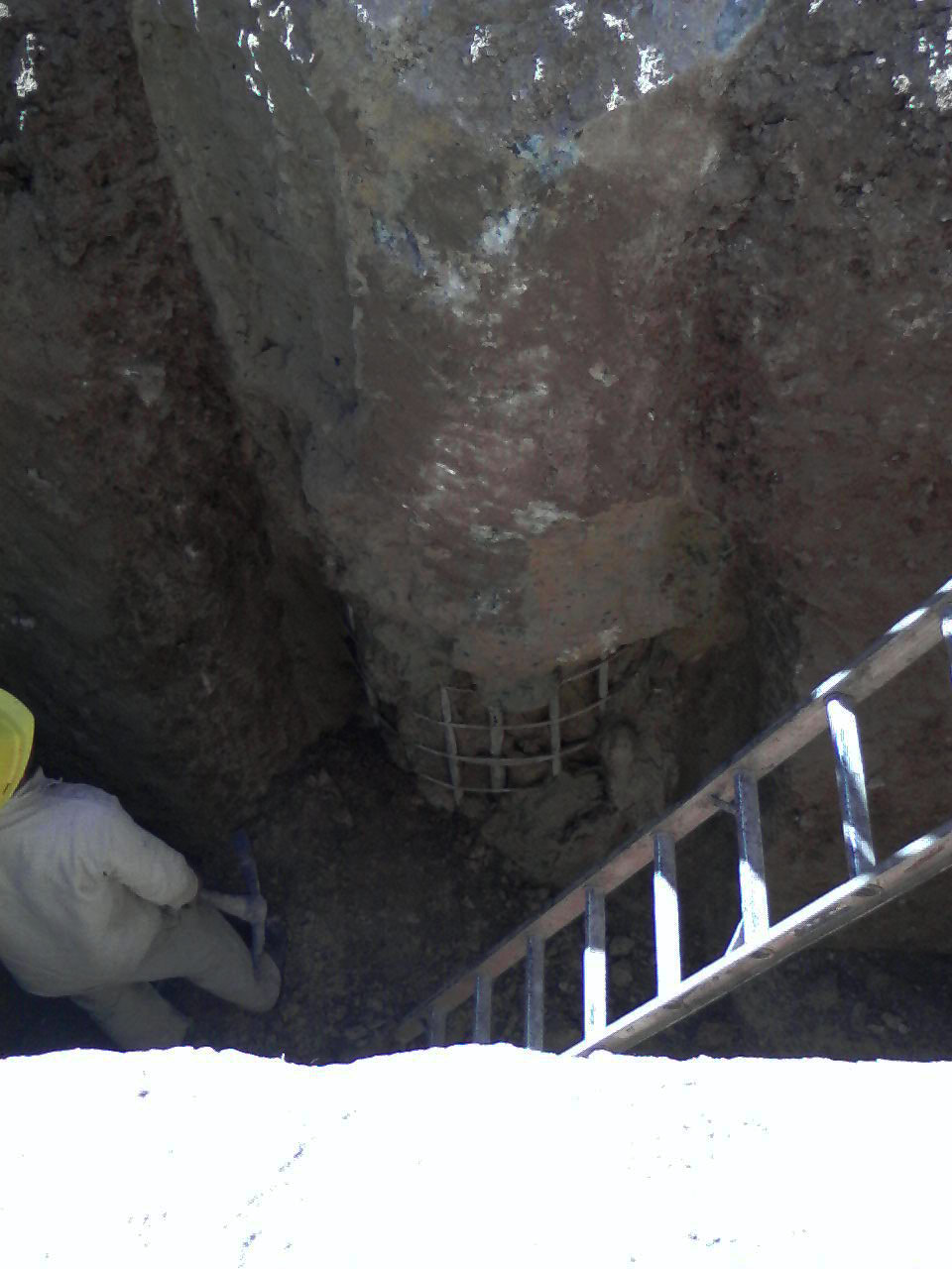 Uno de los primeros casos documentados de pilote excavado presentando el incidente detectado por el ensayo, en este caso un bulbo. Noviembre de 2002.