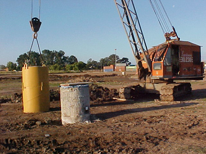 Ejecución de celdas de fertilizante en Terminal Puerto Rosario. Se ejecutaron 3 ensayos de carga preliminares a los efectos de determinar la capacidad portante real de los pilotes para la fundación y su curva carga-deformación. Mediante estos ensayos se produjo un ahorro de un 40% en el volumen del hormigón de pilotes.