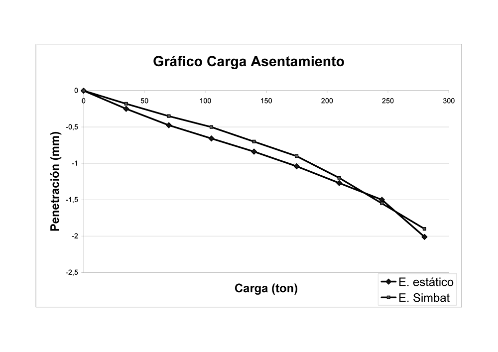 En la obra termoelectrica “General San Martín”, Timbues, provincia de Santa Fe, se realizó un ensayo estático y uno dinámico mediante serie de eventos sobre el mismo pilote. Esta comparación mostró la exactitud de los resultados obtenidos mediante el ensayo conocido como Simbat.