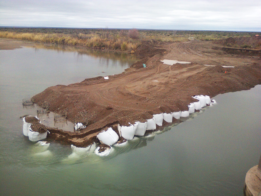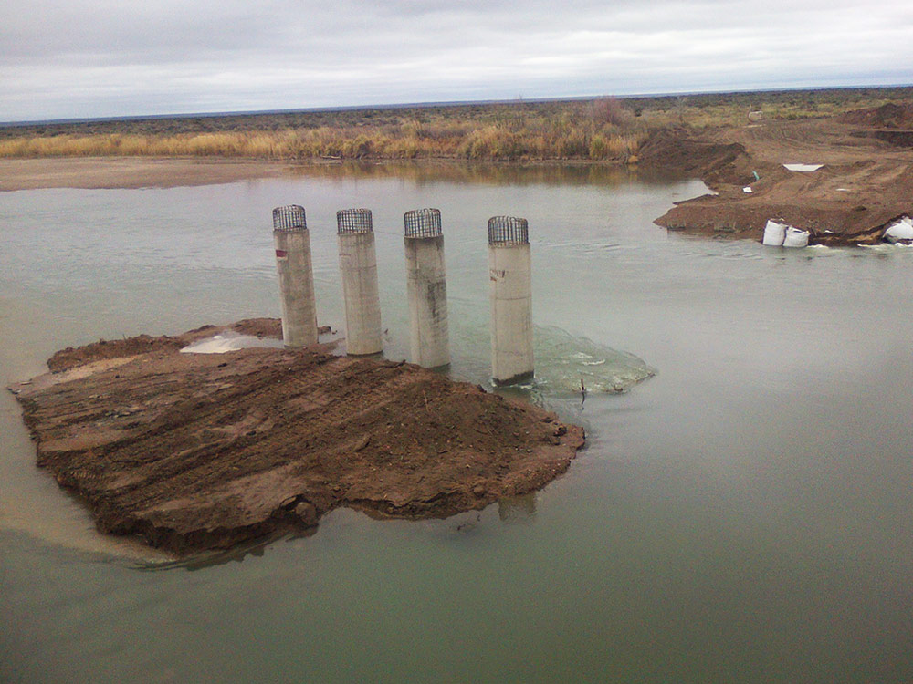 Primer Ensayo Dinámico de Carga para puentes de Vialidad Nacional solicitado por pliego. En agosto de 2012 ya habíamos realizado en la circunvalación de Rosario ensayos para verificar la capacidad portante de los pilotes debido a algunas cuestiones constructivas, en aquella oportunidad se hicieron presente ingenieros de Gerencia de Puentes de Vialidad Nacional. Luego en agosto de 2013 se realizó el control del puente en Ruta Nacional nº 232 sobre el río Colorado, cuyo pilotaje se ve en las fotos.